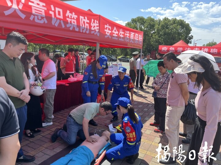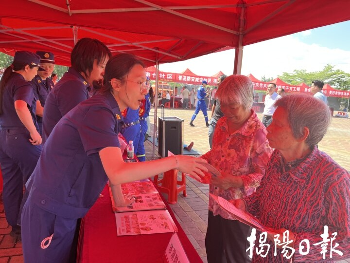 活动现场设置科普展板、咨询台,发放防汛防台风、地震避险等科普宣传资料,并播放“‘揭’说安全·走进一线”短视频等防灾宣传片;揭阳空港经济区消防救援大队开展应急灭火装备展示及现场灭火演示;市蓝天救援志愿者协会组织自救互救技能培训,现场演示心肺复苏等急救技术,吸引众多市民参与互动学习。针对老年人、易灾村(社区)特殊群体,市、区应急管理局还深入社区老年人活动中心开展宣传活动。