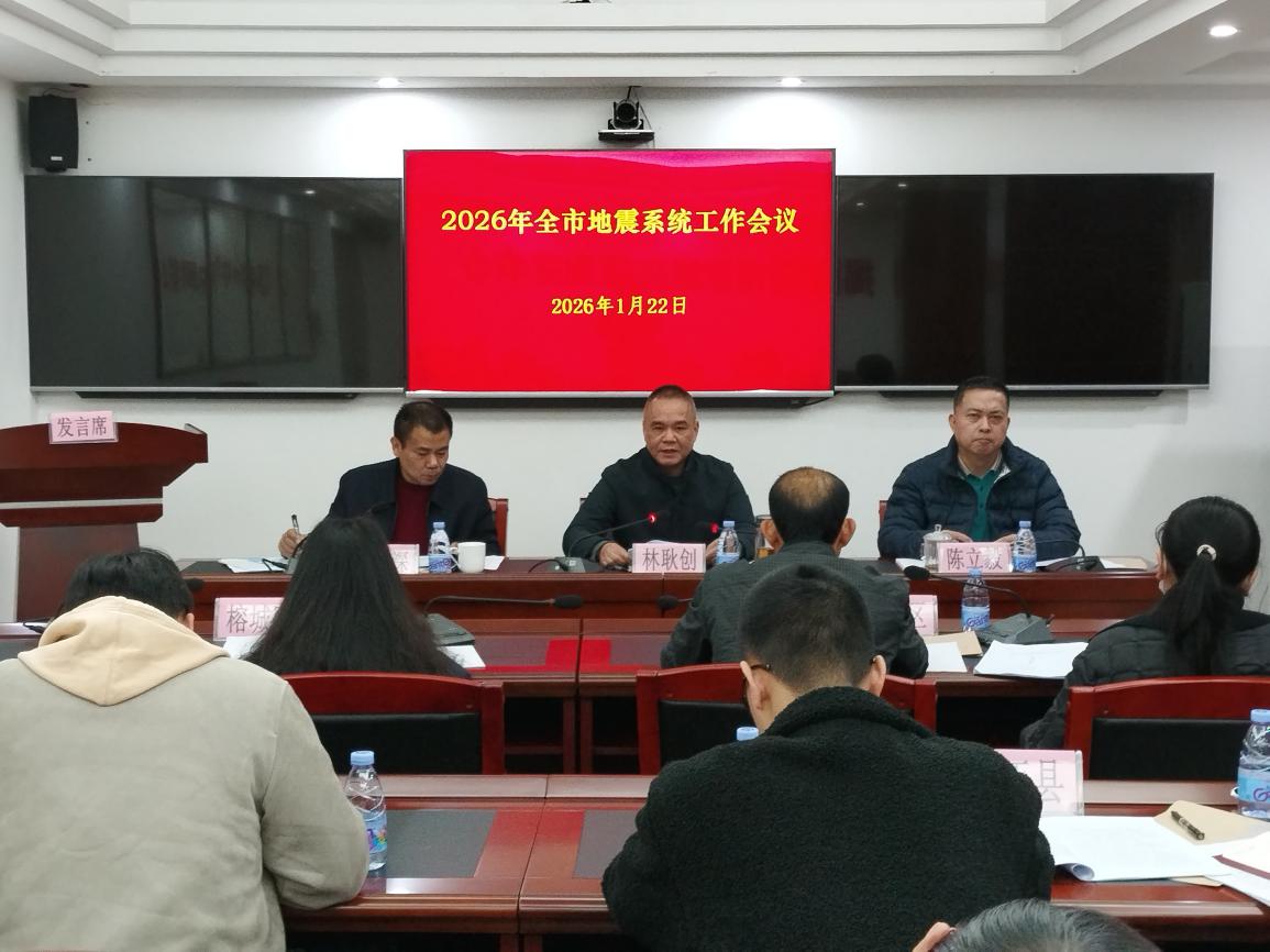 1月22日,2026年全市地震系统工作会议在市地震局应急指挥中心召开。市地震局局长林耿创出席会议并作工作报告,各县(市、区)地震工作管理部门负责人及相关业务骨干参加会议,市纪委监委驻市自然资源局纪检监察组组长陈立毅到会指导。