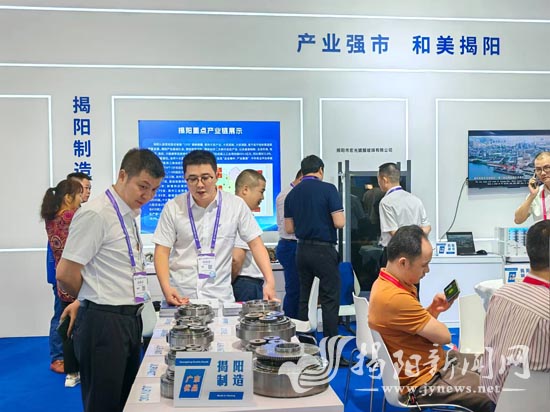 本届中博会,揭阳是粤东地区唯一参展的地级市。展会上,我市以“产业强市·和美揭阳”为主题,围绕新材料、高端装备、新型储能等重点领域,组织国家级专精特新“小巨人”企业、省级专精特新中小企业、省级制造业单项冠军企业等多家优质中小企业(展位6个)和超过200名采购商参展参会(见图。江洁荣 摄)。天诚密封件、宏光玻璃、巨轮智能装备、华申新能源科技、兴财实业、纯晶玻璃、蒙泰高新等参展企业代表积极亮出光伏组件、机器人组件、储能基站、双碳管理平台等创新成果,另外,兴荣五金参加了智能穿戴与现代钟表专业展。我市各参展企业充分展示“揭阳制造”金名片,并就企业转型升级、科研转化、市场开拓等具体业务与来自全球的采购商热烈交流,加强沟通合作,促进共赢发展。