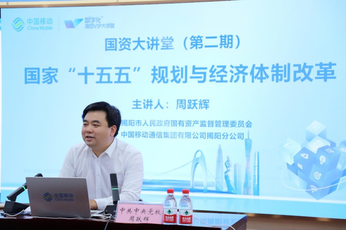 10月17日,市国资委联合中国移动揭阳分公司举办“揭阳国资大讲堂”第二期专题培训班,国资系统近70名人参训。本次培训邀请中共中央党校经济学部副教授周跃辉围绕国家“十五五”规划与经济体制改革进行授课。市国资委党委书记、副主任林晓珊寄语学员,要胸怀“国之大者”提高政治站位,聚焦改革攻坚锤炼本领,为“产业强市、和美揭阳”贡献力量。