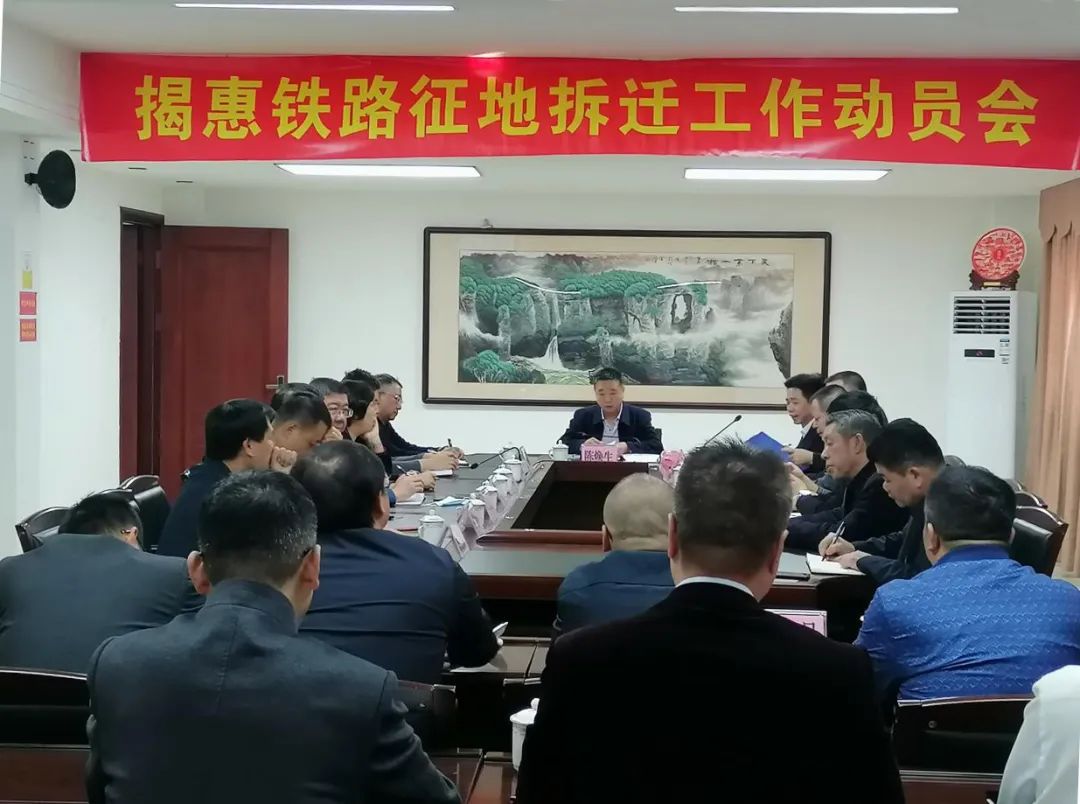 11月25日,揭阳市交通运输局召开揭惠铁路征地拆迁工作动员会,局党组书记、局长陈焕生出席会议并作动员讲话,局党组成员、副局长吴舜凯主持会议并部署相关工作。
