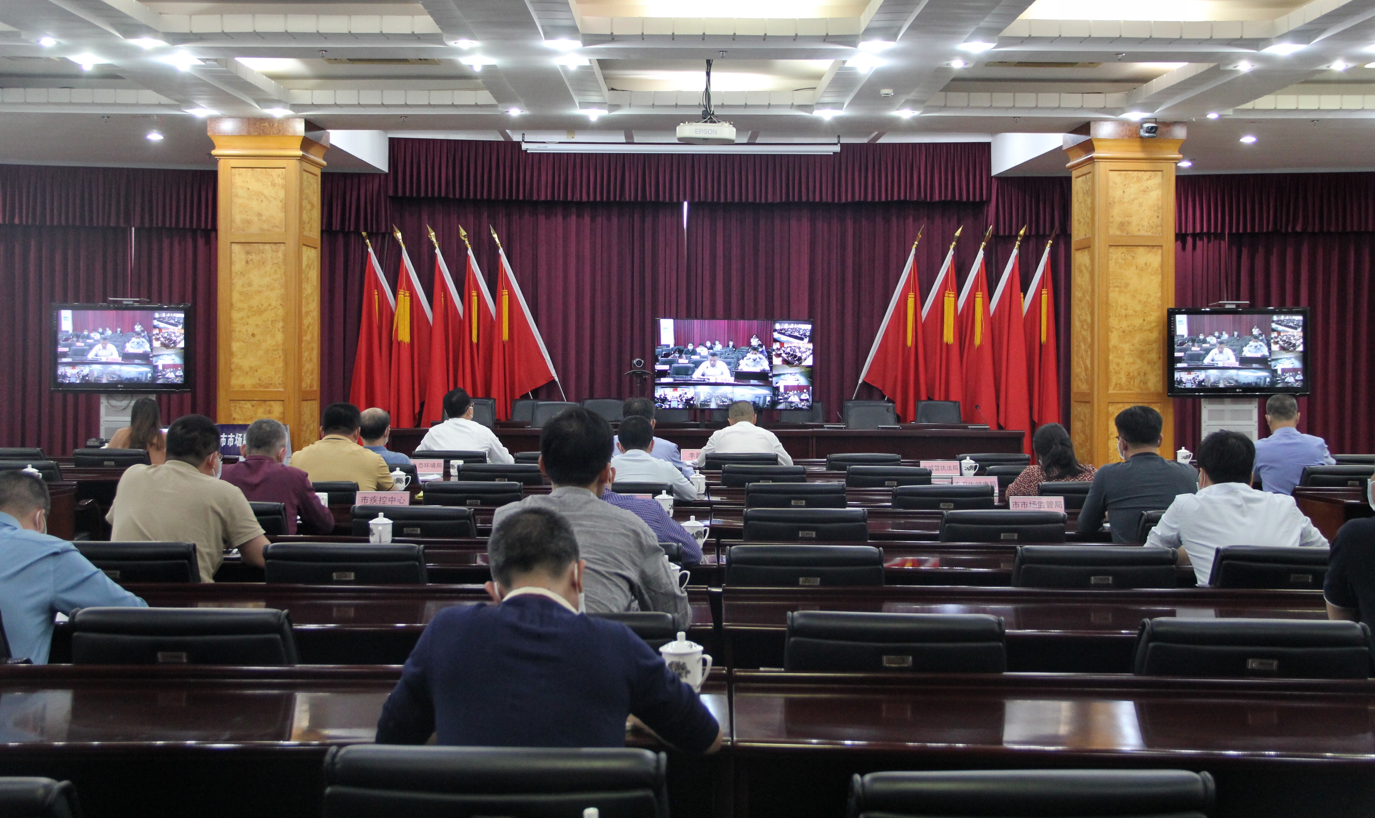 市局设主会场,各县(市、区)局(分局)在分会场以视频连线的形式参会。市市场和冷链防控专班各成员单位有关负责同志,市市场监管局负责同志、各相关科室主要负责同志参加了会议。