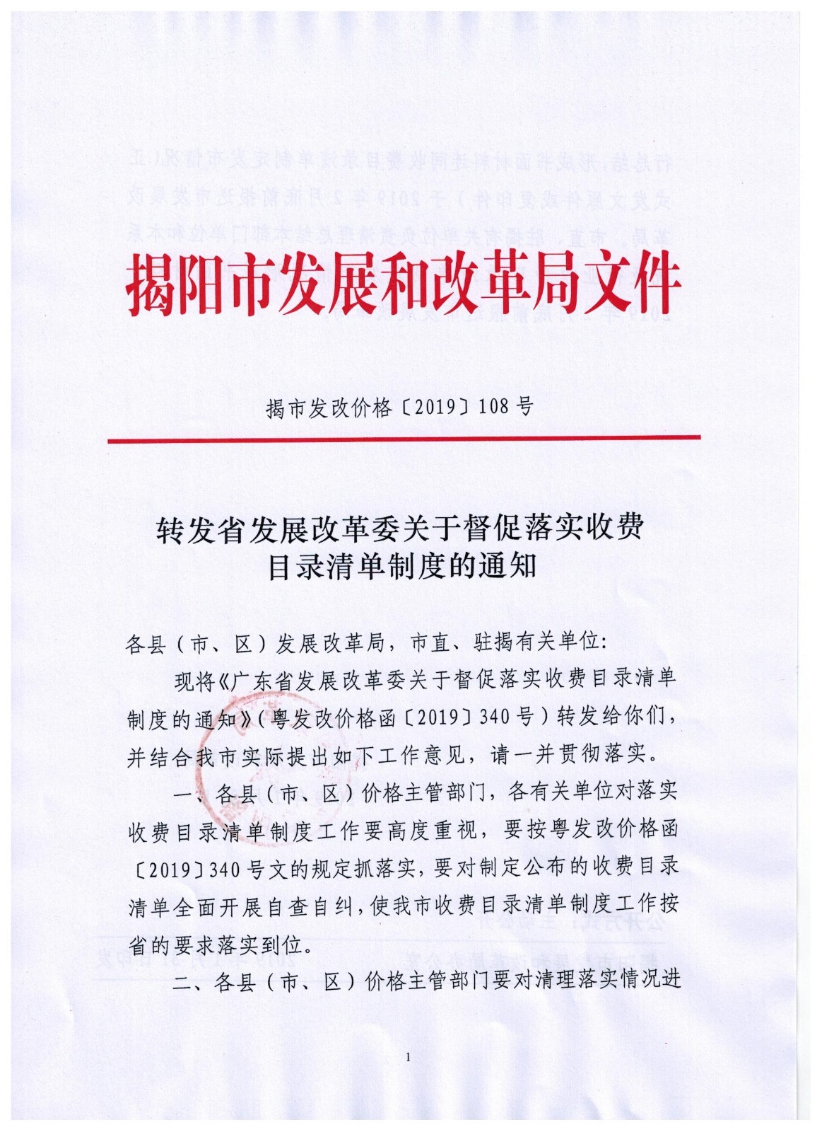 关于督促落实收费目录清单制度的通知(粤发改价格函[2019]340号)(以此件为准)