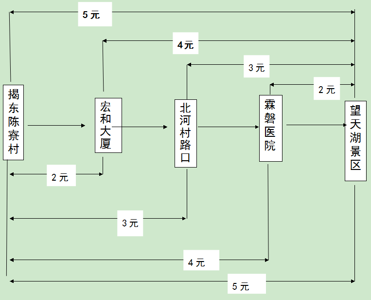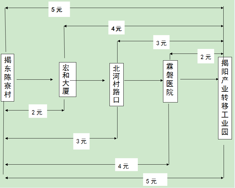 附件:揭东陈寮村至揭阳产业转移工业园(陈寮村至望天湖景区)新能源公交示范线路分段收费示意图。