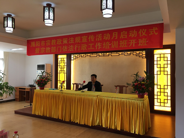 我市从市一级到各县(市、区)民宗局和各级宗教团体都充分调动起来,整合资源,全力开展起内容丰富、形式多样、主题明确的宗教政策法规学习月活动。市民宗局选派机关干部组成宣讲团从局机关到县(市、区)对民宗系统干部职工和全市宗教界业务骨干开展培训,十一月中旬举行“揭阳市宗教政策法规宣传活动月启动仪式暨宗教部门依法行政工作培训班开班”启动仪式。