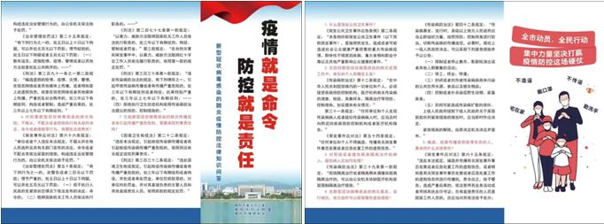 一是主动做好防疫宣传工作。新型冠状病毒疫情暴发以来,产生诸多各类法律问题。市律协与市普法办、市司法局联合制作《新型冠状病毒感染的肺炎疫情防控法律知识问答》宣传册,充分发挥自身专业性,加强对有关防疫相关法律法规的宣传和解读,用律师的专业知识为群众答疑解惑、提供法律帮助,增强群众自我防范意识和社会信心。