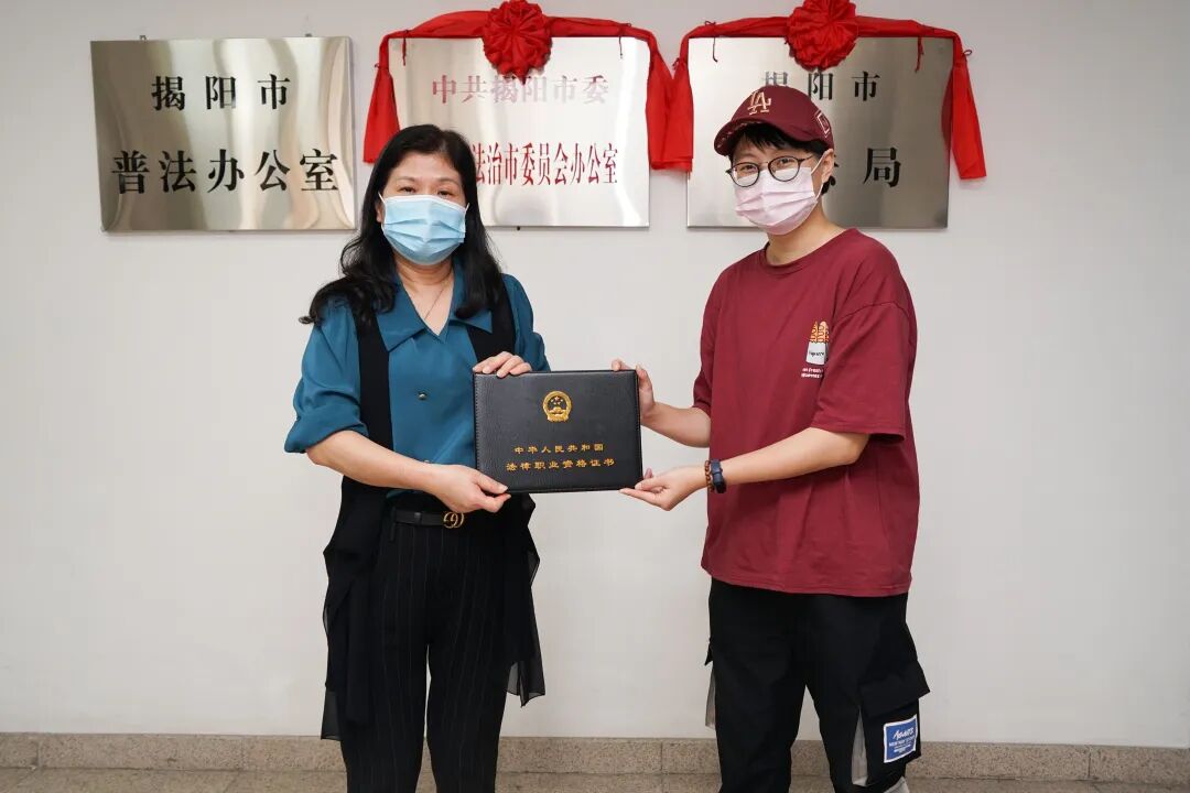 2020年4月21日,吴姓考生来到市司法局分别向律师工作管理科(法律职业资格管理科)以及经办工作人员徐燕娜送上了写着“一心为民 心系群众”和“尽职尽责 热心服务”的锦旗。她说:“如果没有工作人员认真细致和负责任的工作态度,她将与这本证书失之交臂”。随后,市司法局党组成员、副局长高晓娟亲自为其颁发“法律职业资格证书”,当看到考生在拿到了属于她的证书时激动、开心的笑容,司法行政工作践行“不忘初心、牢记使命”的工作成效也进一步得到彰显。