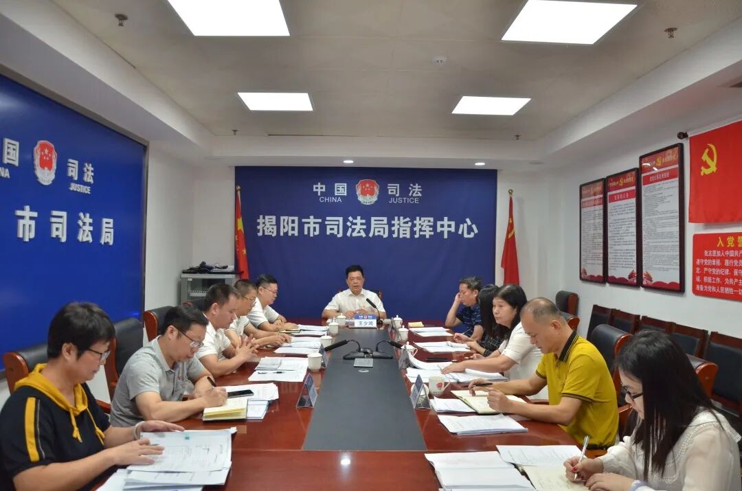 10月13日上午,市司法局召开党组扩大会议,传达学习2020年广东省国家统一法律职业资格考试工作会议精神。局党组书记、局长王少鸿主持会议并作部署,局领导班子成员、相关科室负责人参加会议。 会上,王少鸿要求要充分认识今年的法律职业资格考试,是在决胜全面建成小康社会、决战脱贫攻坚、疫情防控常态化条件下的一次大考,能否让所有考生顺利参加考试,能否为考生和工作人员营造安全放心的考场环境,能否确保考试组织实施工作安全平稳顺利,是摆在我们面前的重要考题。面对疫情防控常态化条件下的新形势新任务新要求,我们要始终坚持“从严治考、规范管理、热情服务”总原则,并就统筹做好疫情防控和考试组织实施工作提出三点意见:一是按照司法部、省司法厅的工作部署,严格落实“十个百分百”的工作要求,精心组织,加强沟通协调,做好保电、保网等工作,确保万无一失。二是要按照司法部、教育部、国家卫生健康委联合印发的《新冠肺炎疫情防控常态化下国家统一法律职业资格考试组织实施与防疫工作指导意见》的要求,统筹做好疫情防控常态化下的法律职业资格考试工作,有效保障广大应试人员、考试工作人员的生命安全和身体健康。三是要把2020年法律职业资格考试的组织实施工作做为全局头等大事,局领导及全体干部职工要全员参与、各就各位、认真履职,全力以赴做好法律职业资格考试的各项工作,确保圆满完成今年的法律职业资格考试。
