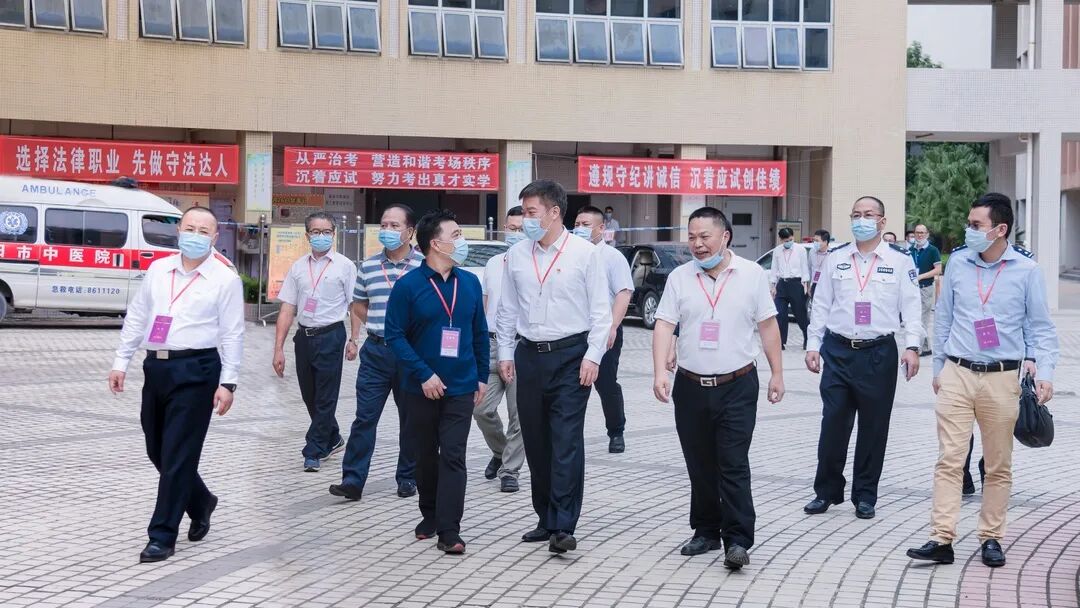 10月31日上午,省司法厅党委委员、省戒毒局党委书记、局长张友生,副市长、市公安局局长梁瑞国,在市司法局领导王少鸿、韦子庆等的陪同下赴考点学校巡考督导,市委政法委、市人大监司工委、市公安局、市教育局、市卫生健康局、市保密局等单位相关领导参加巡考。巡考组听取了今年国家统一法律职业资格考试考务工作和应急措施组织工作的情况汇报,对揭阳考区考务筹备工作给予充分肯定,并对全力做好考试服务和安全保障提出明确要求。