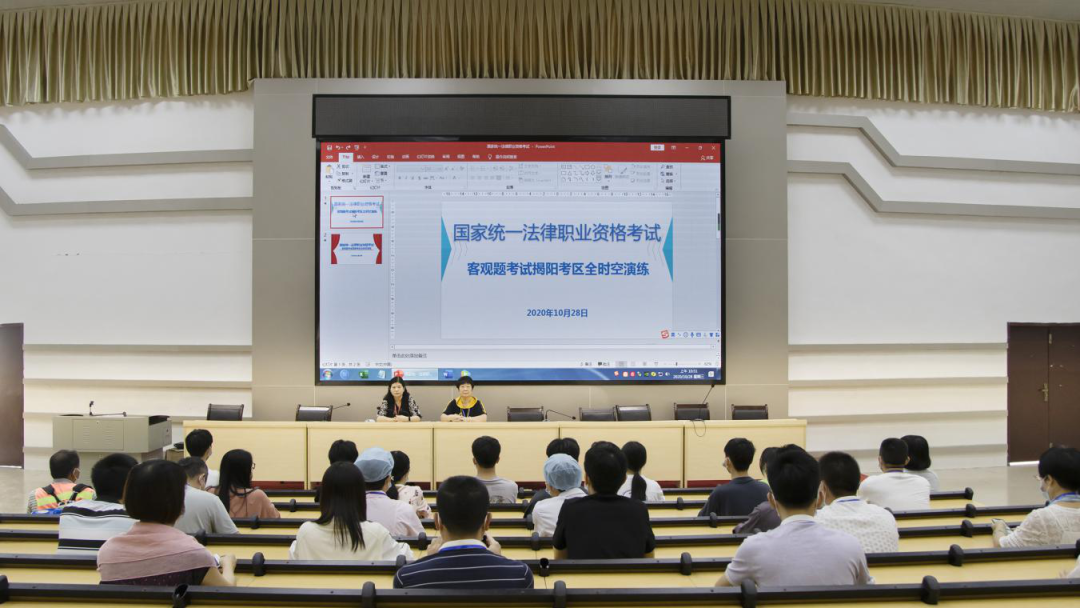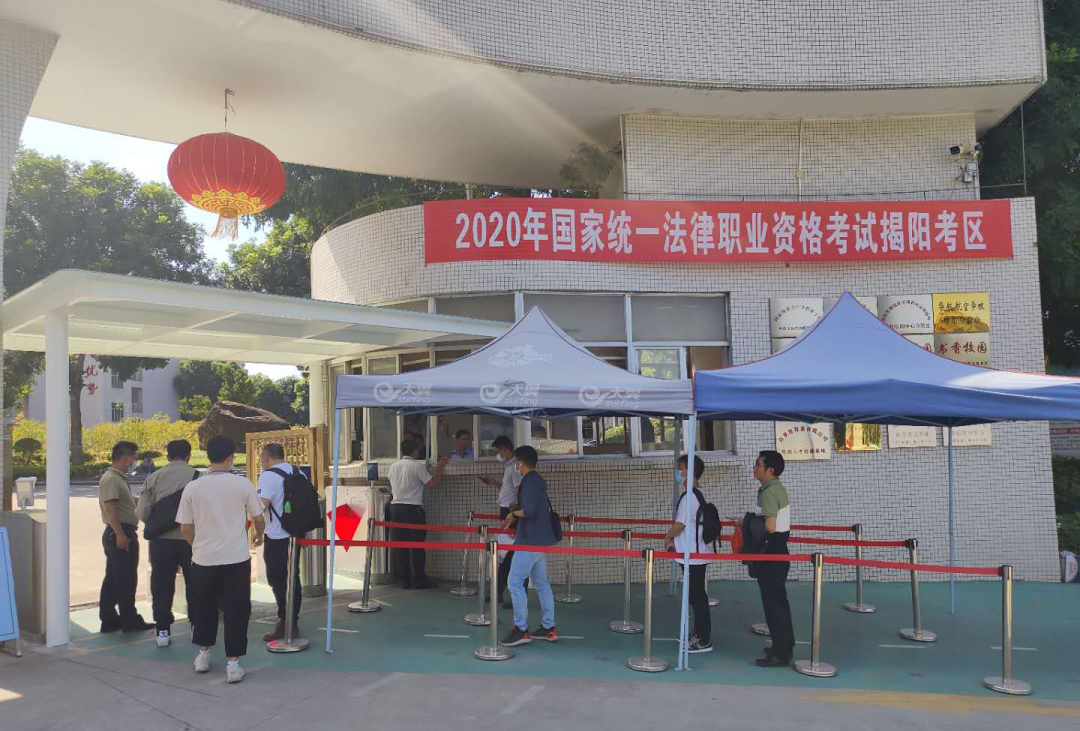 10月31日至11月1日,2020年国家统一法律职业资格考试揭阳考区客观题考试组织实施工作安全平稳顺利完成。今年,揭阳考区报考人数达932人,其中揭阳考生670人,潮州考生262人,创历史新高。揭阳考区设置1个考点、9个普通考场、1 个备用考场、2个隔离考场,分两个批次考试。