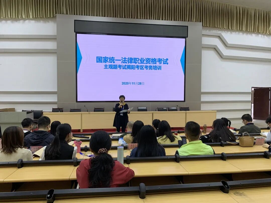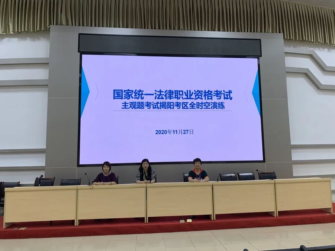 11月28日,2020年国家统一法律职业资格考试主观题考试揭阳考区安全顺利完成。揭阳考区考点设置在揭阳捷和职业技术学校,共有399名考生参加考试,其中揭阳考生287人,潮州考生112人。揭阳考区主观题考试采取机考方式,共设置8个考场、1个备用考场、2个隔离考场。