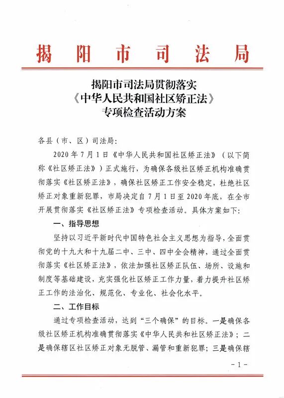 为确保全市各级社区矫正机构准确贯彻落实《社区矫正法》,确保社区矫正工作安全稳定,杜绝社区矫正对象脱管、漏管和重新犯罪,市司法局自7月起至年底,在全市开展贯彻落实《社区矫正法》专项检查活动。