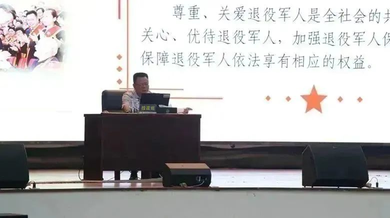 活动首先由广州军事法院、广东省退役军人事务厅主要领导围绕《中华人民共和国军人地位和权益保障法》《中华人民共和国退役军人保障法》中与退伍季官兵切身利益息息相关的问题进行解读,用简洁明了的语言为驻地官兵普及相关法律知识。随后广东省司法厅、广东省退役军人事务厅、广州军事法院向驻地官兵赠送一批法律书箱和普法宣传品,鼓励官兵积极学法用法、自觉尊法守法。