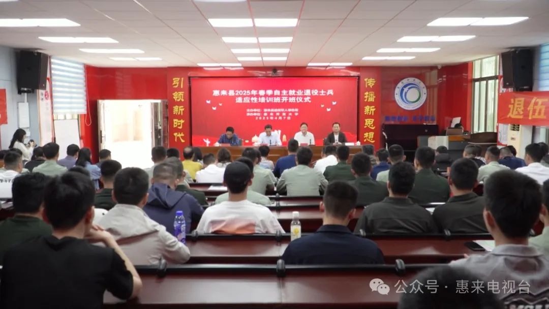 为进一步帮助退役军人充分稳定就业和创业,提升退役军人就业竞争力,4月7日下午,由惠来县退役军人事务局主办,惠来开放大学承办的2025年春季自主就业退役士兵适应性培训班开班。县委常委、政法委书记林育群出席开班仪式并讲话。县退役军人事务局局长郑钦镇主持开班仪式。