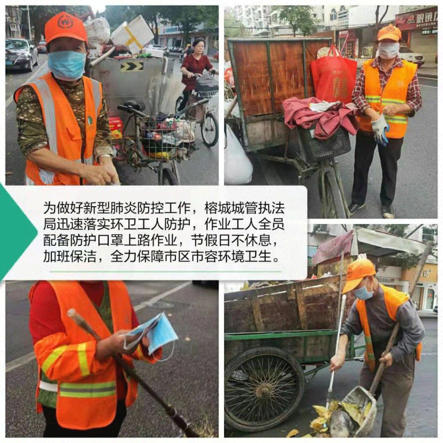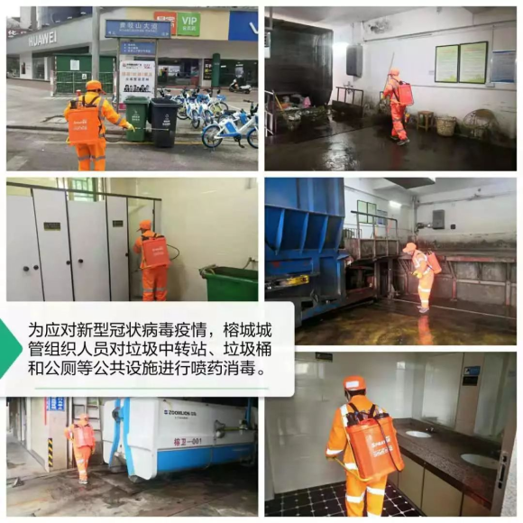 榕城区城管执法局坚决按照区委区政府工作部署,做好春节期间环境卫生保洁工作和新型病毒感染的肺炎疫情防控工作: