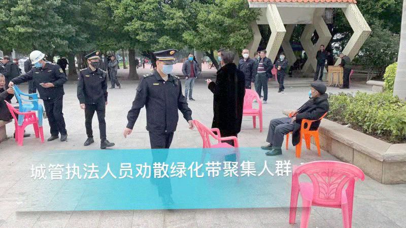 加强公共区域巡查工作,执法中队对公园、广场、沿江路等公共区域进行人群劝离,并积极配合防疫部门做好防疫工作。
