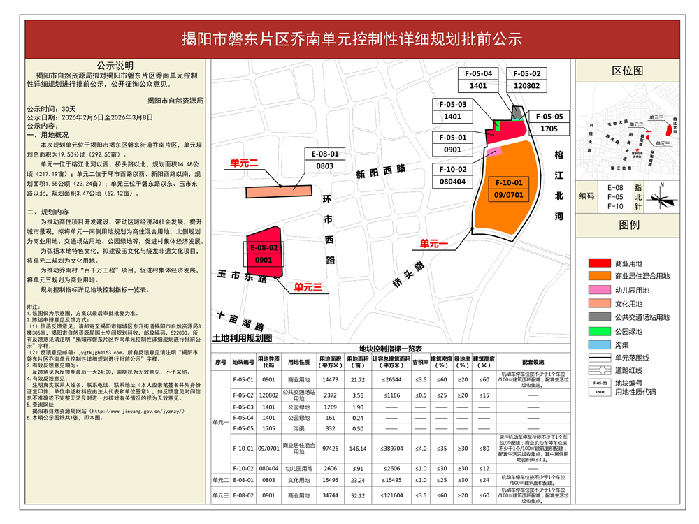揭阳市磐东片区乔南单元控制性详细规划批前公示