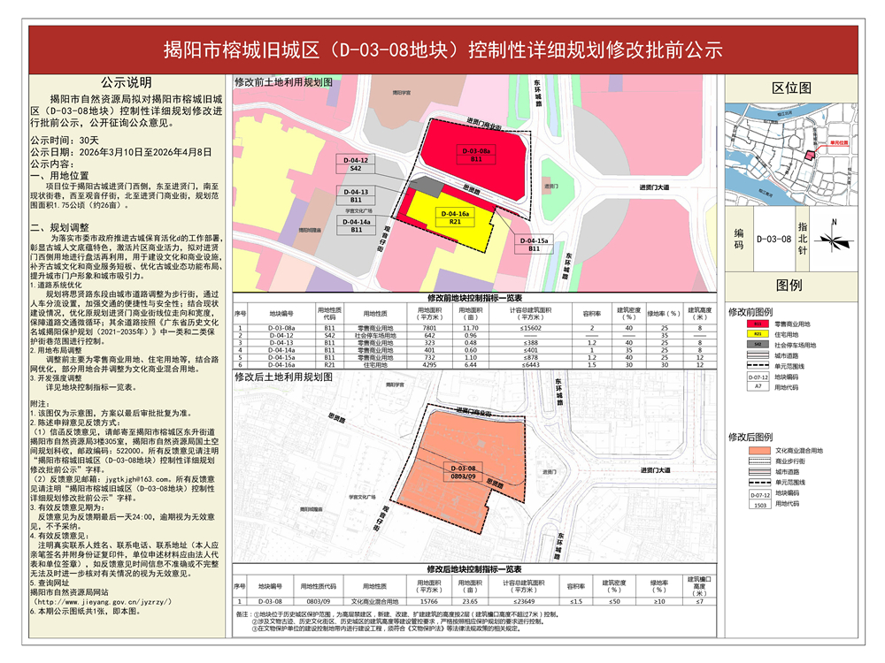 揭阳市榕城旧城区(D-03-08地块)控制性详细规划修改批前公示