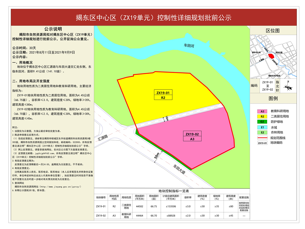 揭东区中心区(ZX19单元)控制性详细规划批前公示