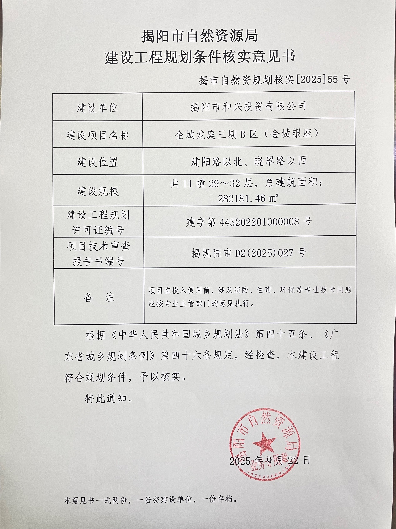 “金城龙庭三期B区(金城银座)”建设工程规划条件核实意见书