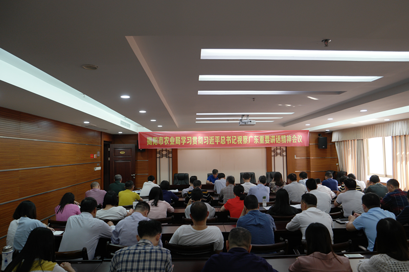 会议要求,全局干部职工要将思想和行动统一到市委、市政府部署要求上来,把持续深入学习贯彻习近平总书记视察广东重要讲话精神,作为当前和今后一段时期的重要政治任务来抓,深刻认识总书记重要讲话的重大政治意义、现实意义和深远历史意义,切实提高政治站位,强化政治担当,扎实推进揭阳乡村振兴发展,努力在新时代实现新作为,为把揭阳建成新发展极作出应有贡献。