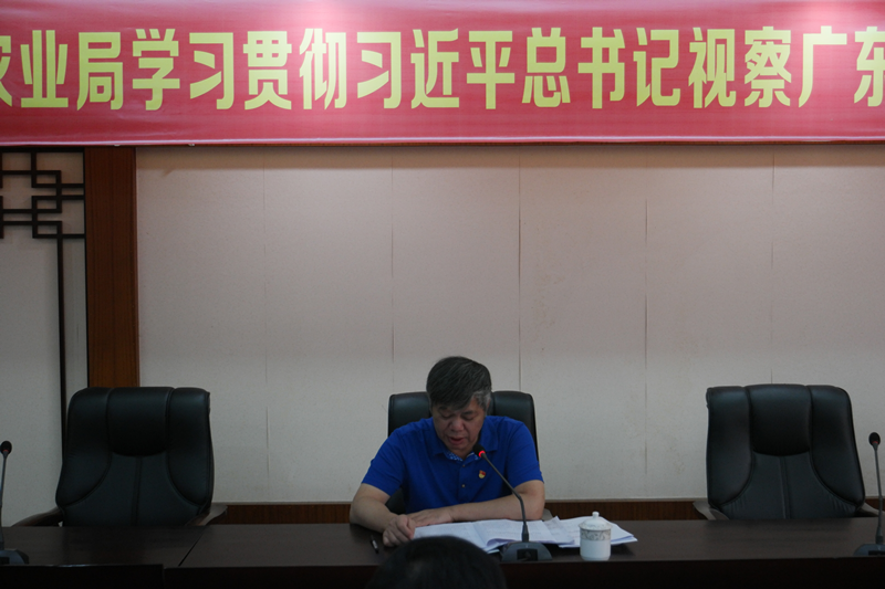 6日上午,市农业局召开全体干部职工会议,传达学习贯彻习近平总书记视察广东重要讲话精神,以及全省传达学习贯彻习近平总书记视察广东重要讲话精神干部大会精神、市委常委(扩大)会议精神。局党组书记、局长郑元龙主持会议。