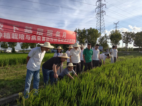 随后,参训人员前往隆江镇见龙村葵江种植合作社水稻种植基地进行实地参观学习,市农业综合技术推广中心尤伟群主任现场就水稻种植病虫害防控问题展开讲解。他结合多年基层服务经验,总结梳理稻纵卷叶螟、稻飞虱、二化螟、地下害虫、水稻纹枯病、稻瘟病、细菌性条斑病等常见病虫害的高发时间节点和对应防控策略,并对水稻病虫害防治给出“守破口、保齐穗”的防控要求。