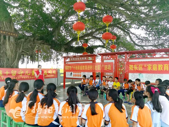 在乡村,志愿者举办公益活动关爱留守儿童。