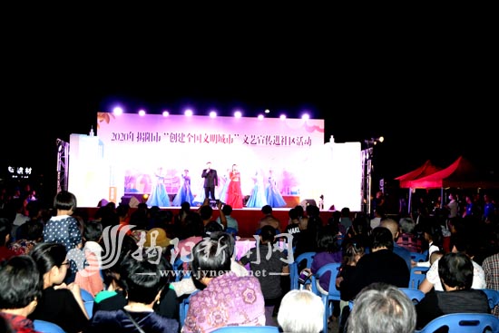 据悉,2020年揭阳市“创建全国文明城市”文艺宣传进社区活动将在榕城、揭东、空港经济区举办25场巡回演出活动。此次活动由市委宣传部、市文明办主办,榕城区新时代文明实践中心、区委宣传部协办,仙桥街道新时代文明实践所、仙桥街道西岐社区承办。据榕城区创文办工作人员介绍,揭阳市“创建全国文明城市”文艺宣传进社区活动还将在榕城区9个不同社区举办9场演出,向群众传递“创文永远在路上”理念,为创文营造浓厚的社会氛围,广泛动员群众参与到全国文明城市的创建工作中。