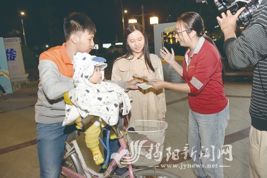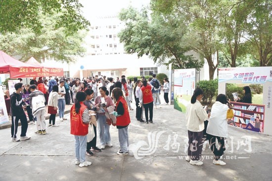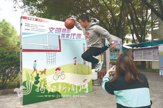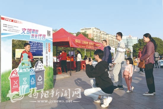 在揭阳职业技术学院,年轻的学子们在创文宣传相框里拍活泼萌照,把收集齐全的揭阳创文主题精美卡片拿回去当书签,领各种实用礼品。