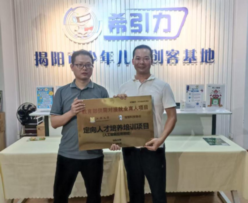 维智科技培训(揭阳市榕城区)有限公司总经理陈希介绍,自2024年以来,乡村振兴组牵头公司相继与汕头大学、揭阳职业技术学院、广东工业大学、潮州卫生健康职业学院等高校进行对接,后续落地了实习基地、定向人才培养、点点领域合作等多个项目,成为揭阳市榕城区首家承接国家级教育类项目的民营培训机构。