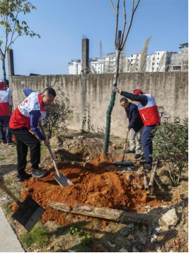 在植树现场,众人热情高涨、分工明确:有的挥锹挖坑,干劲十足;有的扶苗对齐,认真细致;有的提桶浇水,悉心浇灌。现场处处是忙碌的身影,构成了一幅动人的春日劳动画卷,为初春的溪南街道增添了一片新绿。