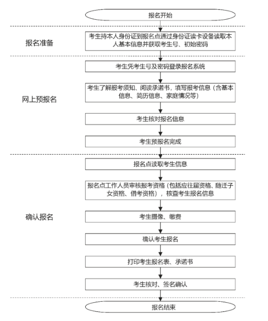 ① 资格审查:报名点通过网上报名系统读取考生信息,现场审核考生提交的相关资料;