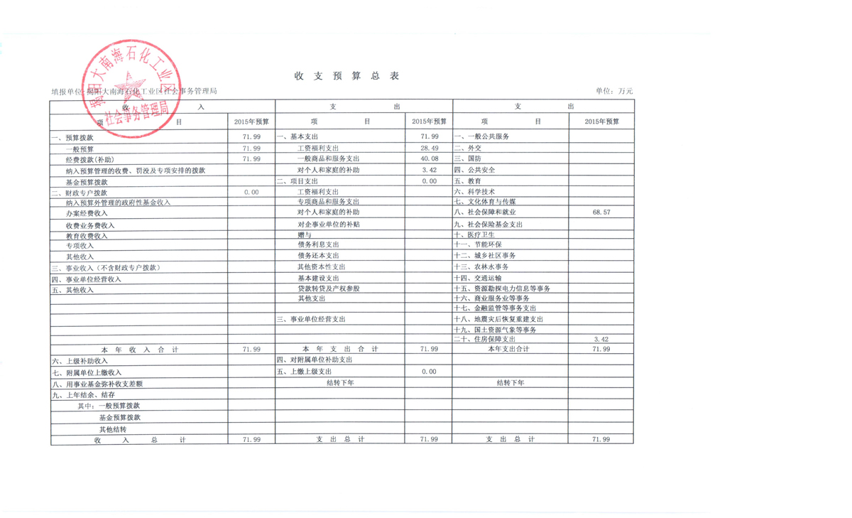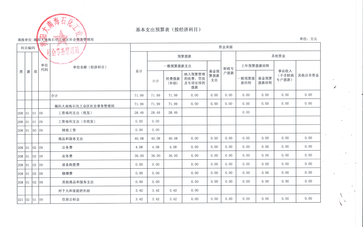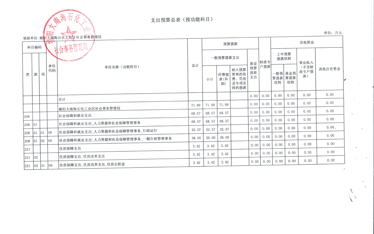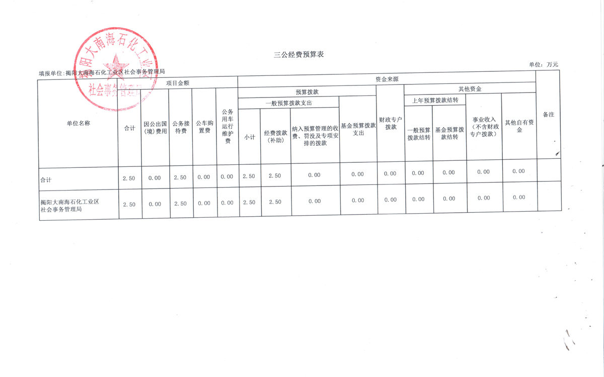依法公开揭阳大南海石化工业区社会事务管理局2015年部门预算和“三公”经费