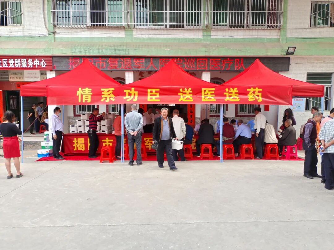 10月12日至29日,揭阳市退役军人事务局组织市复退军人医院巡回医疗队在揭阳市、汕头市和潮州市开展2020年“关爱功臣 送医送药”巡回医疗活动,进一步体现党和政府对优抚对象的关怀,用心用情用力做好关爱革命功臣工作。