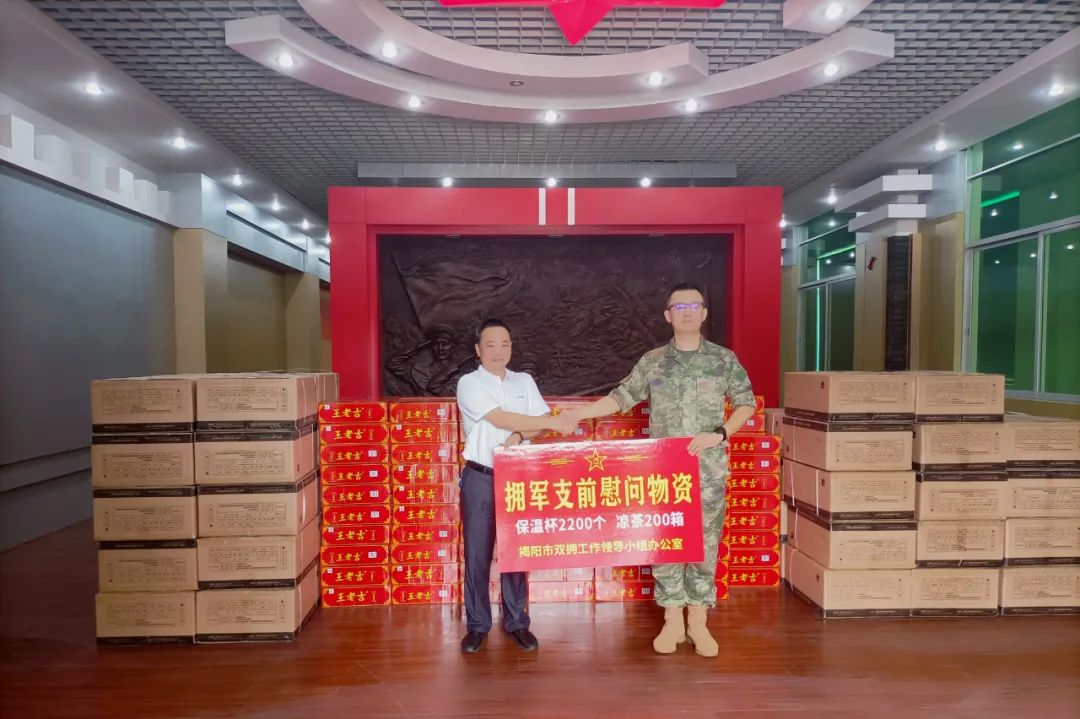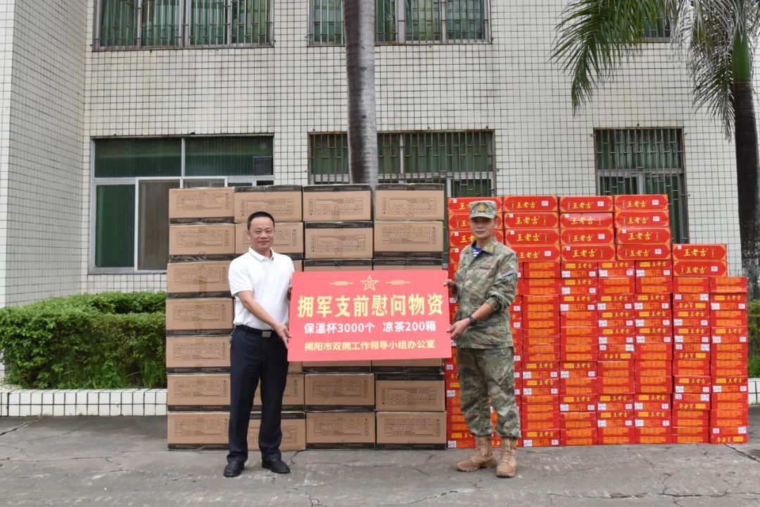炎炎夏日,骄阳似火,练兵场上,热火朝天。近日,揭阳市双拥工作领导小组办公室走访慰问开展野外驻训的驻揭部队官兵,送上一批慰问物资,向正在苦练实战技能的部队官兵,捎去党和政府的关怀与温暖。