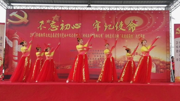 在演出现场,文化志愿者倾情演绎,用文艺的形式宣传党的政策。伴随曼妙的歌舞,党的声音在人民群众中传播,十九大精神在人民心中生根发芽,激励人们在揭阳市委市政府的正确领导下,奋勇前行,积极开展“九项行动”,大力推动“五城同创”,为提升揭阳人民的幸福感,把揭阳打造成粤东新发展极而奋斗!
