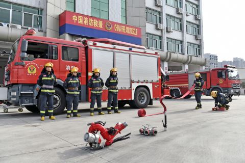 市消防救援支队指战员加强演练,严阵以待保平安。林洁松 摄