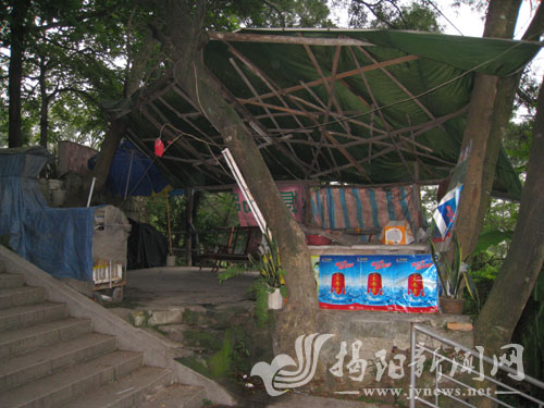在山道旁随意拉起帐篷,支起桌椅便成了一个“摊档”,这种现象在黄岐山上相当普遍。