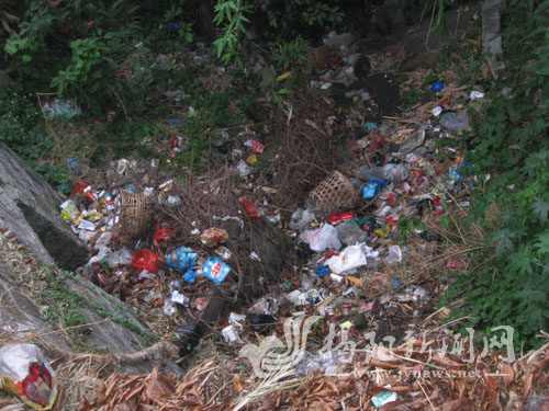垃圾成堆与景区风貌极不协调。