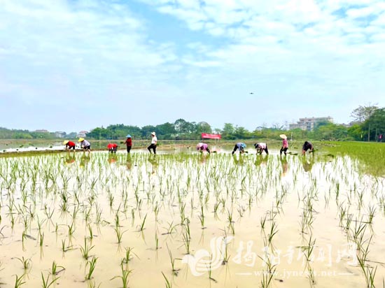 近日,在揭西县凤江镇凤南村,揭西县垦造水田项目的第一批秧苗栽插工作正式开始。