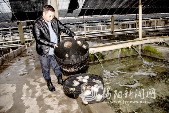 一粒鲍鱼个头大过成年女性的手掌,重达2斤。这是记者近日在惠来县华深水产养殖有限公司鲍鱼养殖场看到的(见图。 郑楚藩 摄)。近年来,惠来的鲍鱼养殖基地引入“活海水”养殖鲍鱼,使这里出品的鲍鱼个头大活力足,带来良好的经济效益。