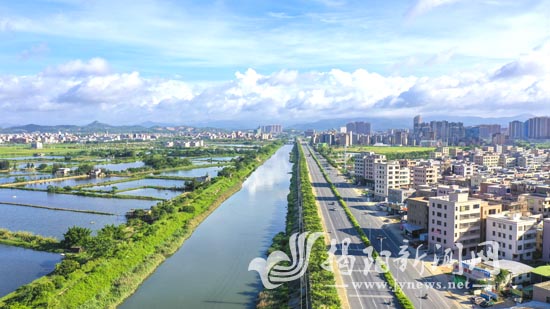 惠来县全面部署山边、水(海)边、路边、城边、村边“五边”绿化建设。图为惠来县城绿化景观带沿河而建,水清岸绿。