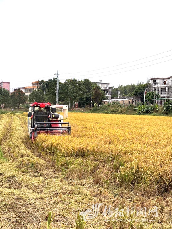 初冬时节,稻浪翻滚。在玉湖镇北坑村的连片稻田里,沉甸甸的稻穗压弯了秸秆,收割机在田间来回穿梭,伴随着阵阵轰鸣声,517亩晚造水稻正式开镰,亩产约1000斤。金黄的稻谷被卷入机仓,留下一排排整齐的稻茬。这派丰收景象,正是北坑村通过土地流转模式激活农业潜力的生动写照。
