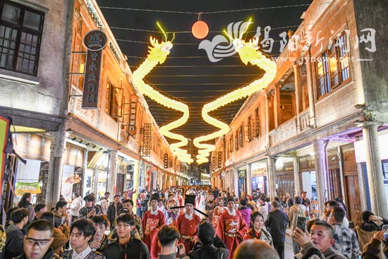 11日晚,揭阳古城保育活化首期亮灯启用,古城里华灯璀璨、游人如织。郑楚藩 林洁松 林碧鸿 摄