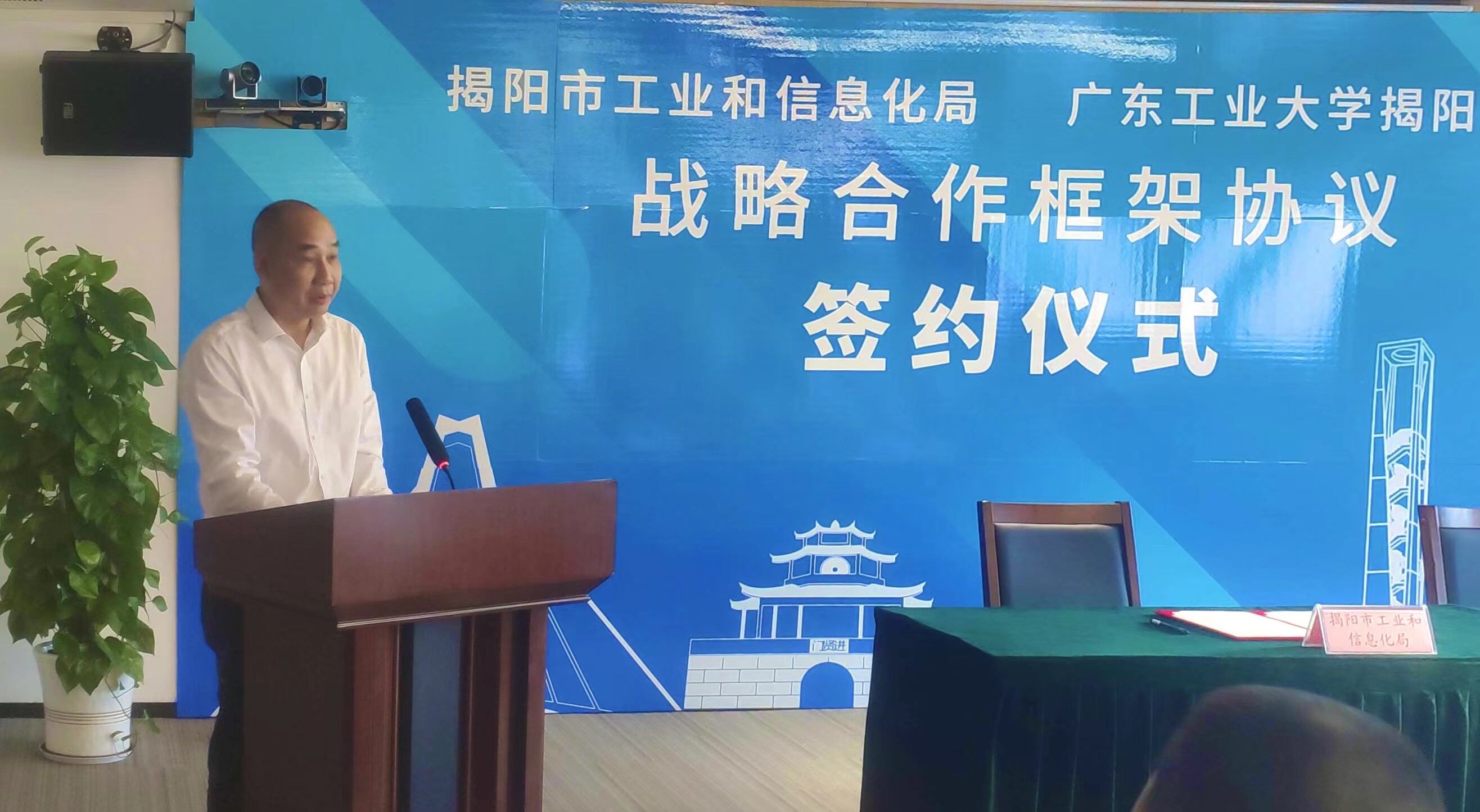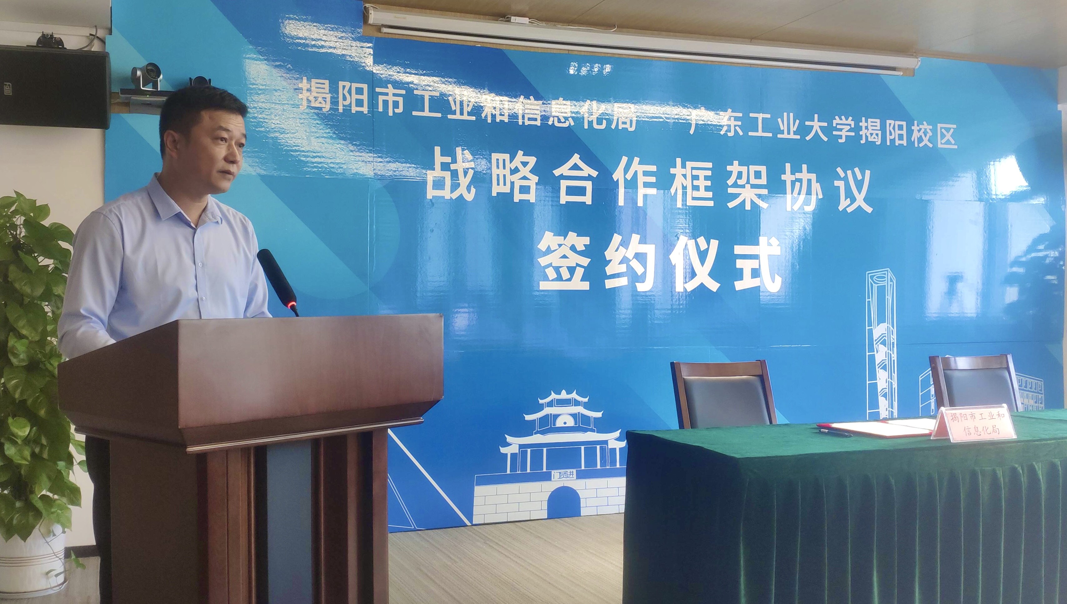 市工业和信息化局副局长谢鹏飞 广东工业大学揭阳校区管委会副主任,综合办主任方喆代表双方进行签约