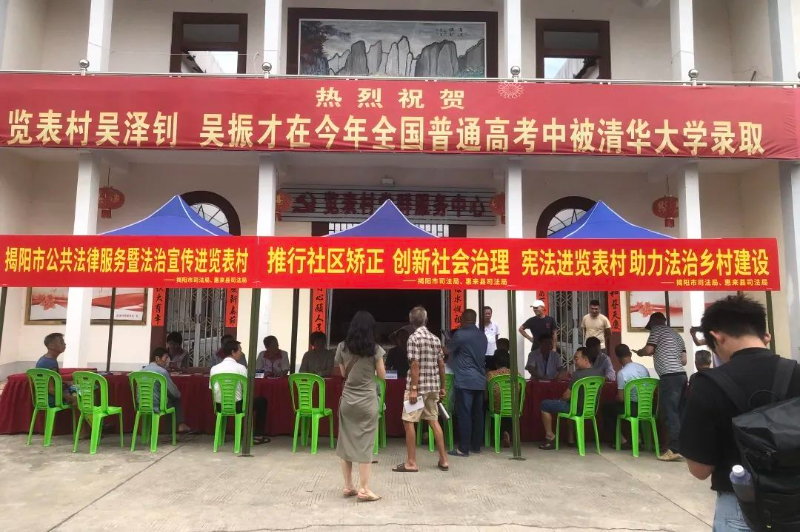 2023年9月11日,揭阳市司法局与惠来县司法局联合组织社会律师、法律援助律师、公证员、司法鉴定人、志愿者等组成法治宣讲团共同走进惠来县岐石镇览表村开展公共法律服务进乡村活动。揭阳市司法局党组成员、政治处主任陈洁新全程参与了活动。