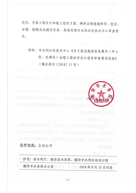 FW201815关于报送揭西县龙潭河(坪上段、龙潭段)治理工程初步设计报告审查意见的函.doc