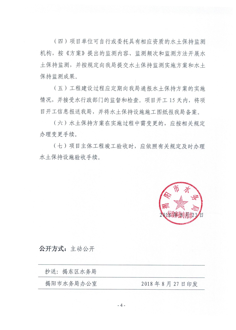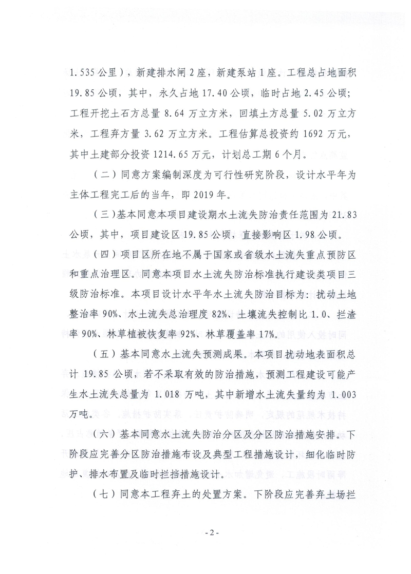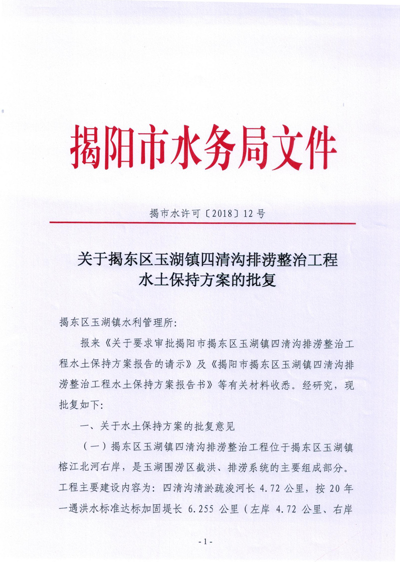 关于揭东区玉湖镇四清沟排涝整治工程水土保持方案的批复