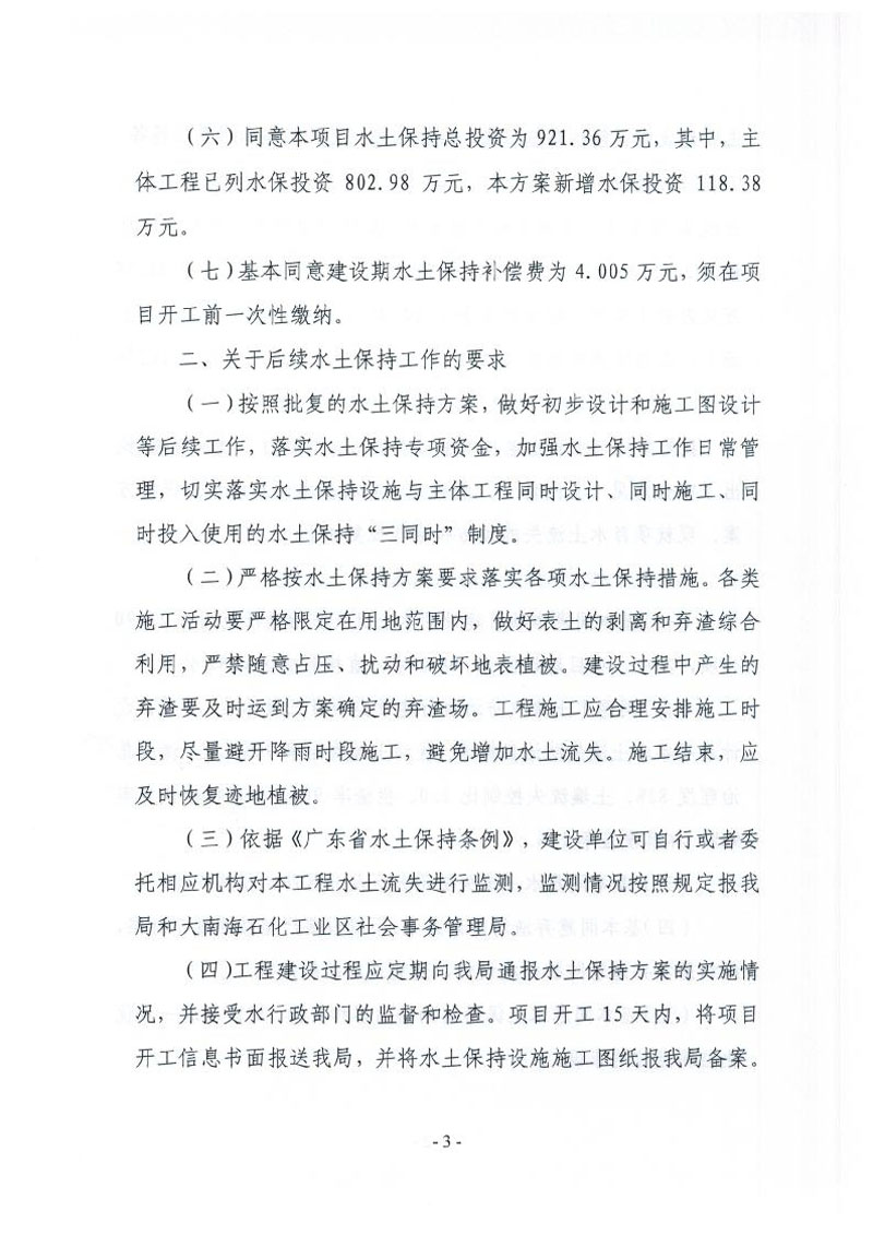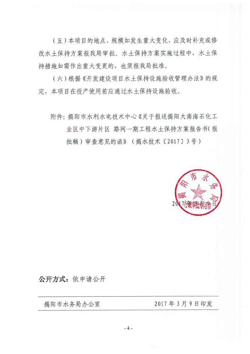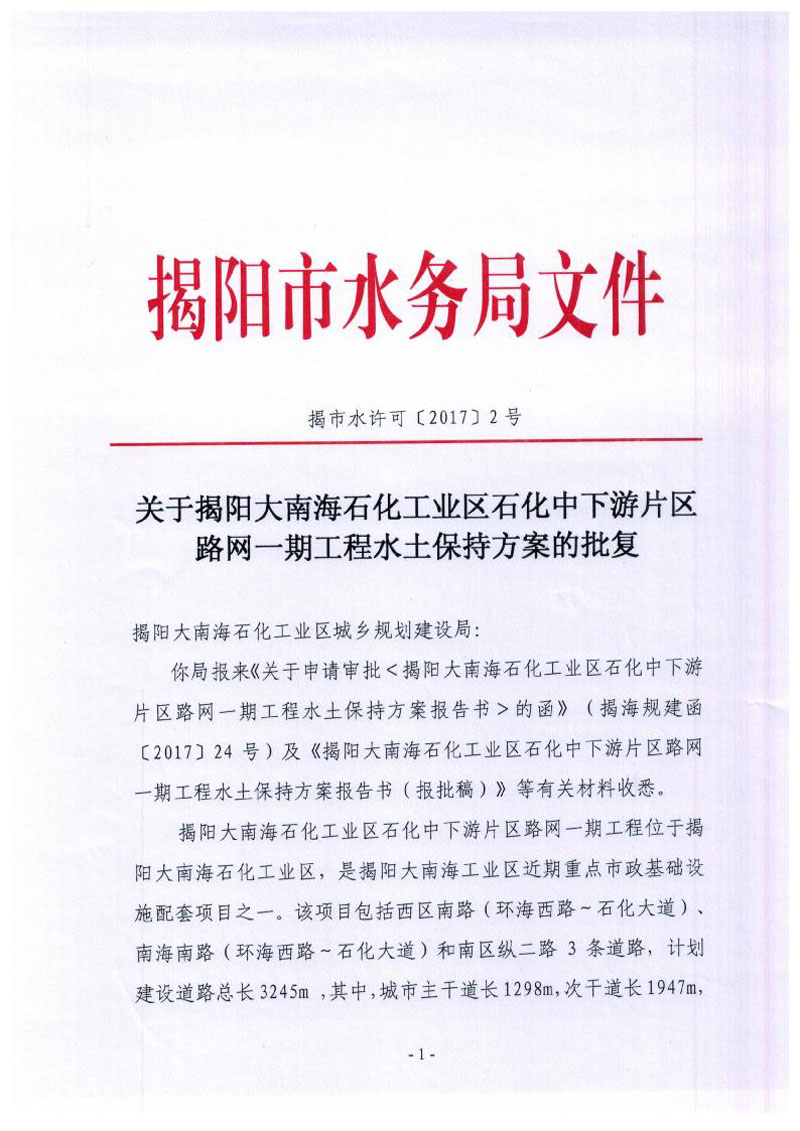 关于揭阳大南海石化工业区石化中下游片区路网一期工程水土保持方案的批复